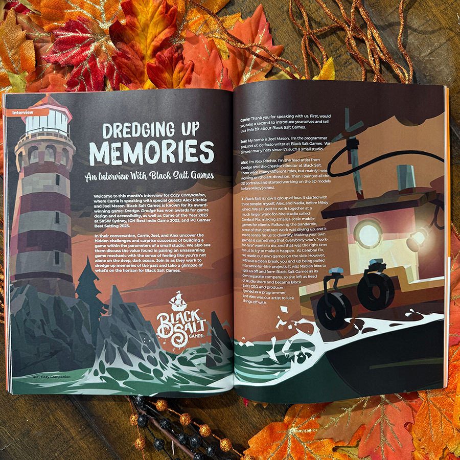 Get a new cozy game to play and the latest print + digital issue of Cozy Companion every month, including: